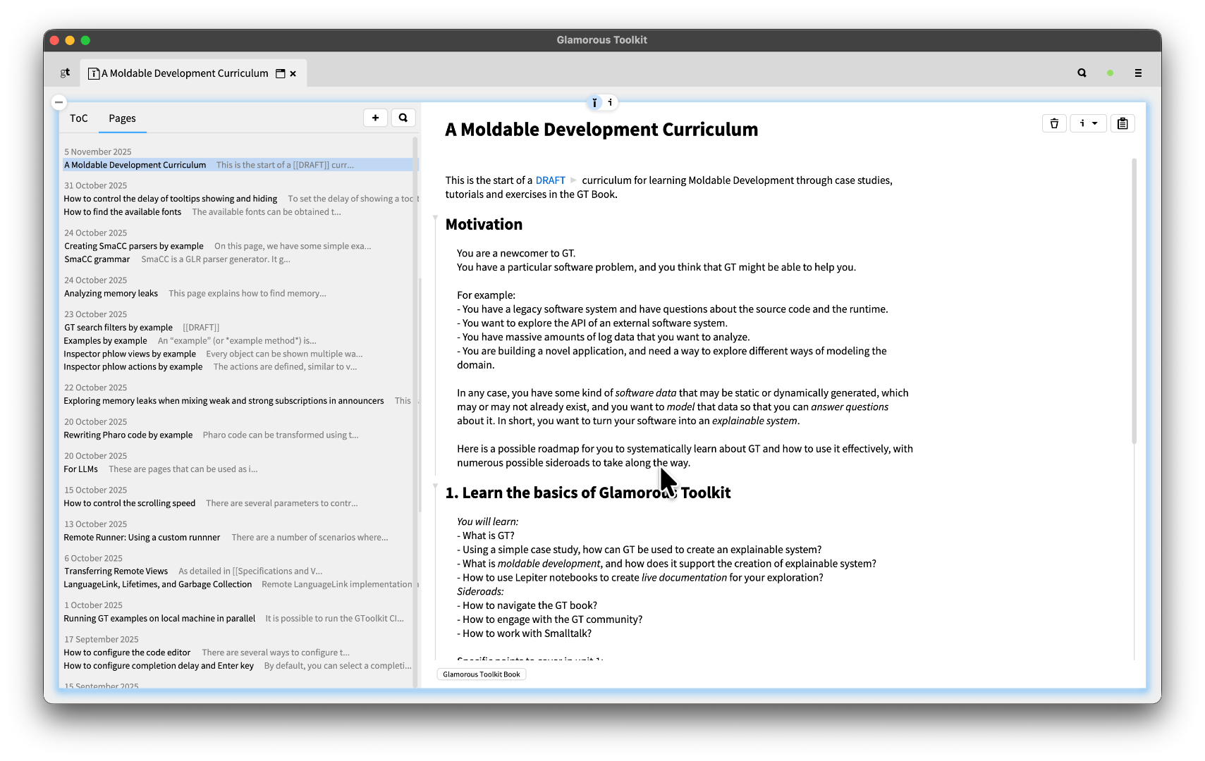 This is the start of a draft curriculum for learning Moldable Development through case studies, tutorials and exercises in the GT Book. –– dmx