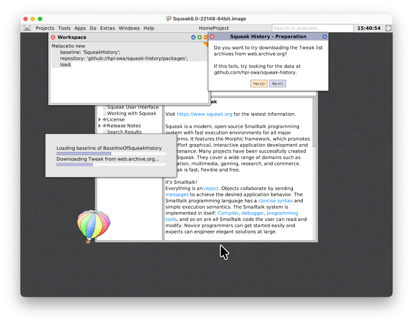 Project for Squeak 5.3 (and above) to explore and learn about the history of Squeak and Squeak-related projects. repository